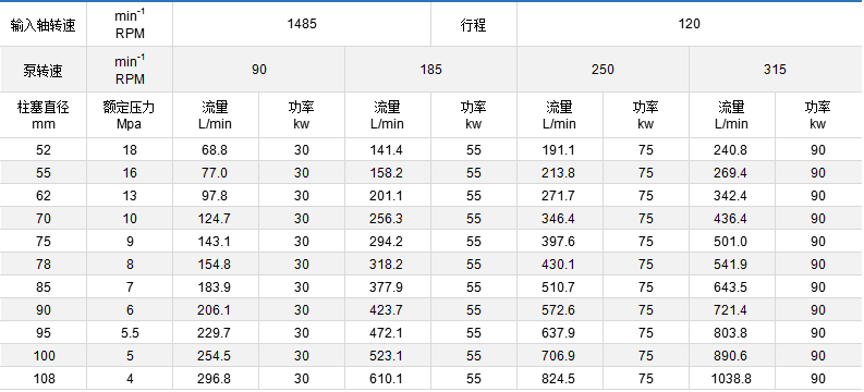 表中技術(shù)參數(shù)作為選型參考,每個(gè)品種的泵都裝有安全調(diào)壓閥,泵的壓力可任意調(diào)節(jié)。